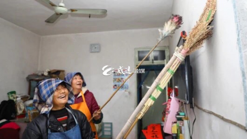 “打陽春”即打揚塵。威遠農村以前的房子,燒柴做飯,煙熏火燎,平時農民沒時間大掃除,等到臘月二十三來一次徹底清掃。那時候,每年臘月二十三吃過早飯,各家的主婦就開始把家里的桌椅板凳、壇壇罐罐等物品搬到院里。不能搬的床、柜子等物件就用塑料布遮起來。然后到竹林里砍一根竹竿,拿回家扎成一把長掃帚。用竹子扎掃帚掃塵,這里面還有驅“竹”掃“陳”的諧音,表示將迎來新年好運。如今在農村,人們住上了樓房,家里進行了裝修,廚房里用上了電或天然氣,也安裝有抽油煙機,屋里基本不再積累煙塵。打揚塵,卻依舊是人們的過年習俗,它寄托著人們辭舊迎新的美好愿望。
