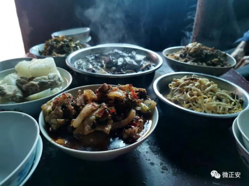 刨湯肉的由來無法考究,但是村里的老一輩說:“刨湯肉,就是把新宰的過年豬,每個部位的肉都‘刨’一點,做成一大桌菜,所以叫刨湯肉。”如今,對美食不懈追求的正安人,不斷創(chuàng)新,各個鄉(xiāng)鎮(zhèn)對刨湯肉的做法都各具特色,但是,新宰的豬肉,親朋好友歡聚一堂的熱鬧,一家團圓的氛圍,才是每一頓刨湯肉的靈魂所在。