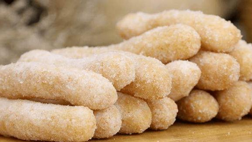 “果子”:有一種油炸的面食點心,形狀和小棗相似,色澤金黃,內有蜂窩孔,無渣,且味甜,故稱金棗,也叫金果,上海人叫油棗兒,大豐人叫“糖果子”。糖果子有不少品種,一種是褐色的,是用紅糖制成的,一種是用白糖包漿的,還有一種細長的“銹釘兒”又香又脆,“糖果子”是70、80后兒時的高檔食品。果子是大豐人傳統(tǒng)的節(jié)令糕點,一直是逢年過節(jié)走親訪友的禮品以及宴請必備食品糕點。