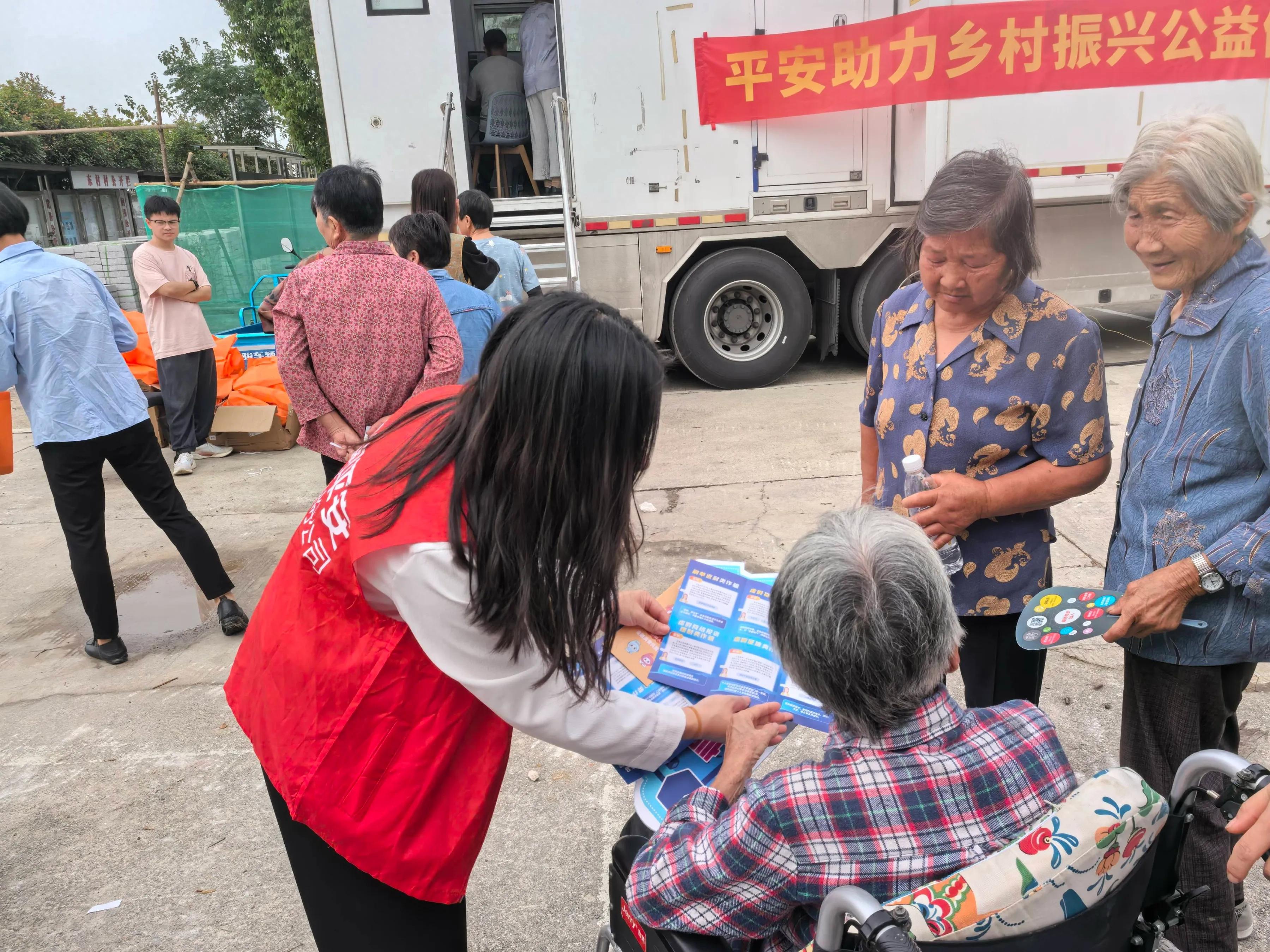 外場設(shè)立了多個服務(wù)攤位,九龍醫(yī)院的內(nèi)科、口腔科、呼吸科等專家醫(yī)生現(xiàn)場坐診,為百余位村民提供免費診療和健康咨詢,將專業(yè)醫(yī)療服務(wù)直接送到村民“家門口”。“金融知識宣傳區(qū)”志愿者通過發(fā)放宣傳折頁等形式,針對農(nóng)村常見的電信詐騙、養(yǎng)老騙局等情況進(jìn)行現(xiàn)場講解,累計發(fā)放金融知識折頁120余份,覆蓋反詐、維權(quán)、保險常識等六大模塊,進(jìn)一步提升村民反詐意識和能力。
