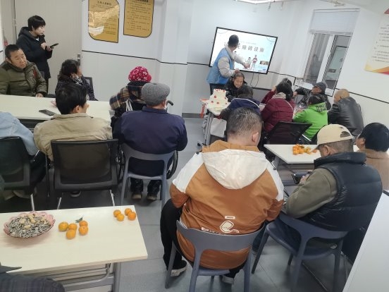 活動現(xiàn)場布置得簡潔而溫馨,長桌上整齊擺放著香甜的大蛋糕、飽滿的花生瓜子,還有色澤鮮亮的橘子等水果,空氣中彌漫著食物的香氣與歡樂的氛圍。茶話會伊始,志愿者們共同切開寓意團圓的大蛋糕,將甜蜜分享給每一位參與者,軟糯的口感與真摯的祝福在歡聲笑語中傳遞。大家圍坐在一起,一邊品嘗美食,一邊暢聊生活趣事、康復心得,一句句家常問候、一個個會心微笑,迅速拉近了彼此的距離。