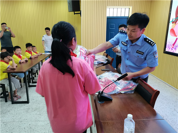 鎮(zhèn)派出所工作人員首先召開了貧困生幫扶座談會,了解了貧困生的相關(guān)家庭情況,增進了雙方情感交流,建立了“一幫一”關(guān)愛家庭。接著先后向80名貧困生贈送了衣物,并合影留念。最后,組織了游戲活動,孩子們在游戲中感受到叔叔們無比的親切與關(guān)懷。他們的心靈受到了撫慰,不再畏首畏尾,彰顯出本真的個性。
