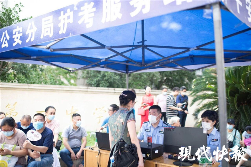 當(dāng)天上午8點(diǎn),現(xiàn)代快報(bào)記者在南京市第一中學(xué)門口看到民警正在對(duì)考生及送考家長進(jìn)行有序引導(dǎo)。為全力做好護(hù)考工作,警方在每個(gè)考點(diǎn)均配備3名執(zhí)勤警力,同時(shí)安排1輛特警武裝巡邏車做好應(yīng)急處突工作。針對(duì)往常時(shí)有發(fā)生的考生忘帶身份證等突發(fā)事件,警方還在每個(gè)考點(diǎn)門前設(shè)置護(hù)考服務(wù)點(diǎn),引入公安戶政辦理一攬子軟硬件系統(tǒng),現(xiàn)場(chǎng)安排行政審批辦證民警為考生服務(wù),僅需1分鐘就可以出具臨時(shí)身份證明,最大限度為“馬大哈”考生消除后顧之憂。
