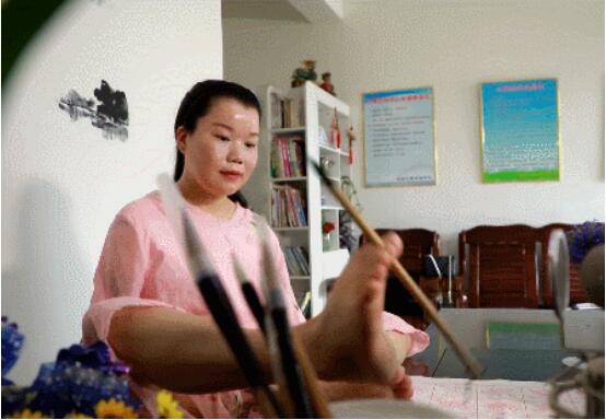 這一突變,讓原本性格活潑的紀蘇原,一下子陷入了絕望。好在,來自家人和病友無微不至的關心照顧,讓她很快重拾笑容,同時也立下目標:即使沒了雙臂,也要活出非凡的人生。紀蘇原說:“去嘗試著用腳代替手,一開始腳總是不聽使喚,所以經常磨破、磨腫。通過一段時間練習,我終于可以用腳使用筷子,能夾到餃子并且送到媽媽的嘴里,那個時候媽媽很欣慰地笑了。”