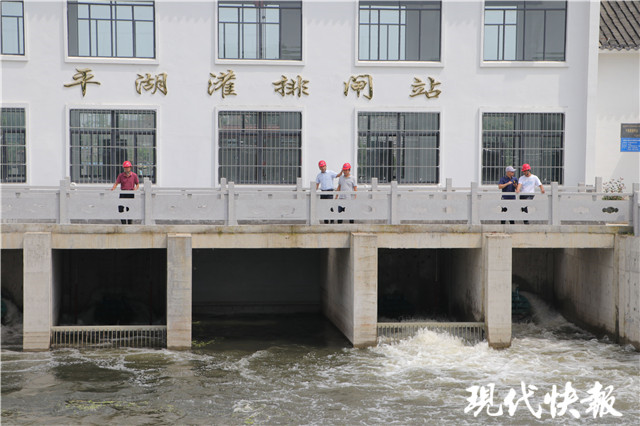 宋蘇海是大縱湖旅游度假區(qū)平湖居委會(huì)人,在度假區(qū)水利站工作已經(jīng)有七八年時(shí)間,主要負(fù)責(zé)平湖灌排閘站。14日上午,現(xiàn)代快報(bào)記者在該閘站看到,閘站的幾臺(tái)水泵正在將鎮(zhèn)區(qū)河道里的水向外河排放,兩邊的水位正常。“大雨的時(shí)候我們會(huì)開閘排水,4臺(tái)水泵,每秒鐘能排出8立方米的水。”宋蘇海說。