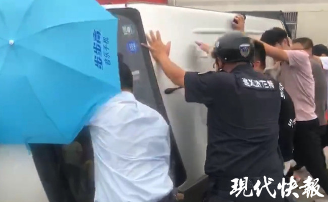 (通訊員 應(yīng)婷婷 文淵 記者 毛曉華)7月12日下午,泰州姜堰城西陸持路與惠民路交叉路口發(fā)生一起兩車相撞事故,其中一輛面包車發(fā)生側(cè)翻,司機(jī)被困車內(nèi)?,F(xiàn)代快報(bào)記者獲悉,危急時刻,周圍群眾自發(fā)和民警一起,合力將汽車抬起救人,這感人一幕被路過的市民拍攝記錄了下來。