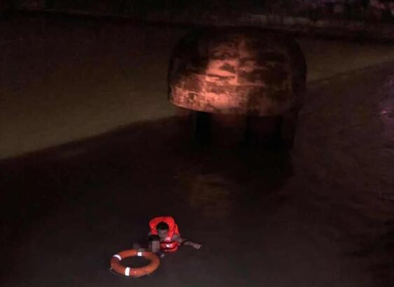 晚上 8 點(diǎn) 13 分,正在值班的灌南公安局新安派出所民警于小慶接到指令后,立即和民警杜明才一起帶著救生圈和救生衣開車奔赴現(xiàn)場(chǎng)。8 點(diǎn) 18 分,到達(dá)現(xiàn)場(chǎng)的于小慶通過(guò)燈光看到了落水者,此時(shí),老人正在奮力踩水,只有面部還露在水面上。離老人四五米遠(yuǎn)的地方,就是防撞橋墩,于小慶立即安排人喊話,讓老人想辦法靠近這個(gè)橋墩,可以扶著橋墩休息會(huì)兒,同時(shí),他穿著游泳衣快速朝著橋下跑了過(guò)去,到了河邊,他直接從兩米來(lái)高的地方跳進(jìn)了河里,奮力朝著落水者的方向游了過(guò)去。