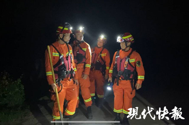 (記者 曹德偉 文/攝)“我們?nèi)サ臅r(shí)候靠岸的右手邊,看看堤壩里面有沒有滲水,回來的時(shí)候,再看看江面上有沒有漩渦。”7月20日,深夜11點(diǎn),鎮(zhèn)江丹徒世業(yè)洲東大壩段的岸堤上,揚(yáng)州市消防救援支隊(duì)維揚(yáng)路特勤站站長(zhǎng)助理邱宏生帶著3名隊(duì)員,在堤上巡查。現(xiàn)代快報(bào)記者跟著他們,一邊走,一邊聽邱宏生介紹汛情。
