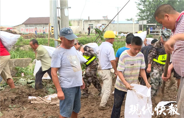 記者在現(xiàn)場看到,原本生長態(tài)勢良好的西瓜地已經(jīng)沒入水中,只有部分藤葉還漂浮在水面上。“遠(yuǎn)處那棵樹以前樹根下都看不到水,現(xiàn)在水已經(jīng)過了樹主干的位置了。”沿河村村書記滿令風(fēng)說,村民們知道險情后,紛紛前來參加搶險,一名67歲的老黨員主動與工作人員一起走到水里,尋找滲漏點,還有一名13歲的少年張本杰肩扛土包來回運送,沒抱怨過一聲累。