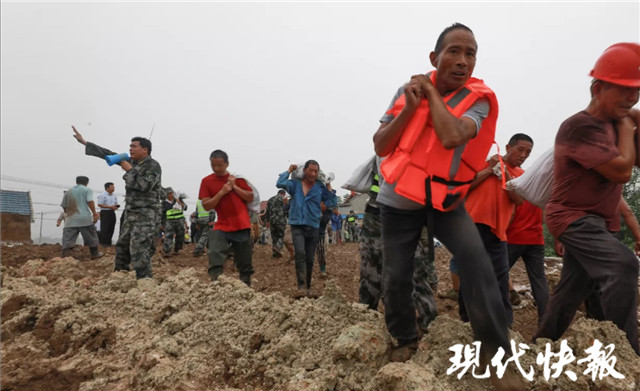 7月22日中午,現(xiàn)代快報記者來到大堤,經(jīng)過一夜的搶險工作,堤上部分搶險人員正躺在泥濘的地上休息,這是他們20多小時以來第一次躺下合眼。下午2時,他們匆匆吃了飯,休息片刻又投入了加固大堤的作業(yè)中。