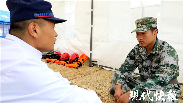 傷口處理好,兩人閑聊起來。黃保平得知,丁好雖然才21歲,但履歷卻很豐富,2014年他初中畢業(yè)后,就讀于江蘇省交通技師學院汽車維修專業(yè),2017年,懷著一個軍營夢,他休學入伍,在上海武警部隊服役,2019年退伍后繼續(xù)返回學校完成學業(yè)。而正值暑假期間,得知江心洲防汛形勢嚴峻,他又主動報名了當?shù)厝宋洳拷M織的民兵,加入了防汛工作。
