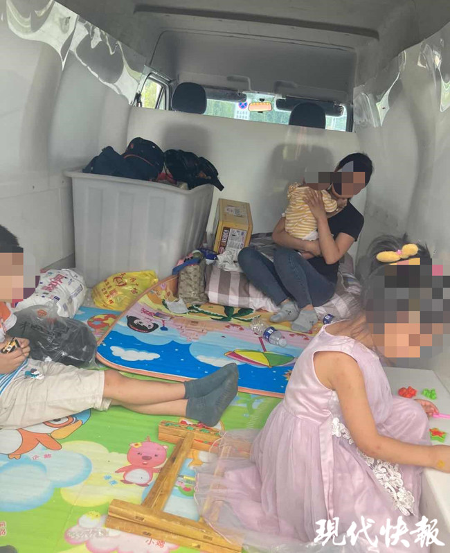 民警檢查發(fā)現(xiàn),除司機(jī)趙某和四位成年乘客以外,其余5人均為兒童,包括一名不足三月的嬰兒。并且,該車后排座椅被全部拆除,用擋板隔起,還鋪設(shè)了地墊,小孩們在車廂里席地而坐,儼然成了一個(gè)“兒童樂園”。