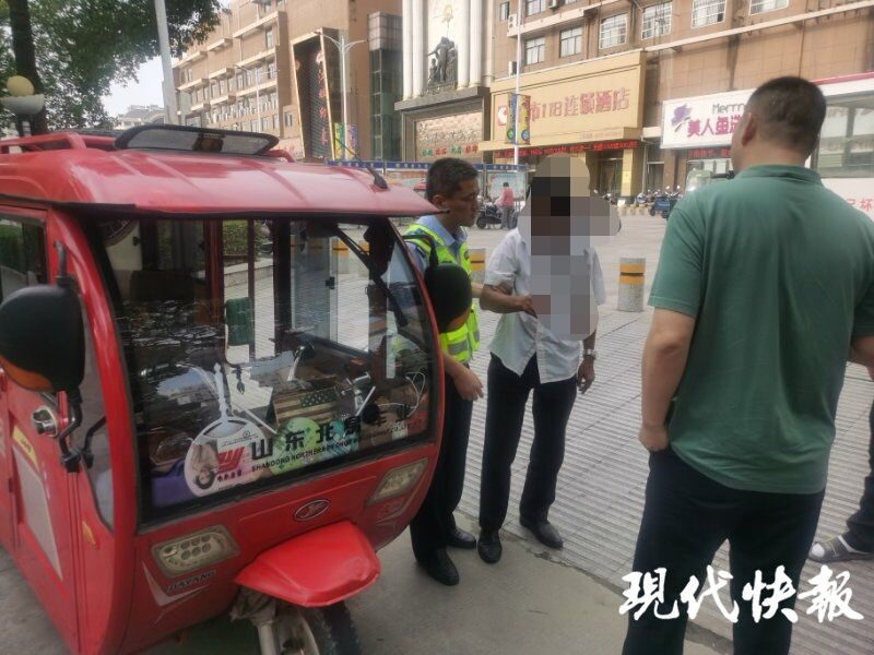 巧的是,25日傍晚,戴航從單位加班回家途中路過當?shù)卮鬂櫚l(fā)超市附近,不經(jīng)意發(fā)現(xiàn)路邊停著一輛紅色電三輪。