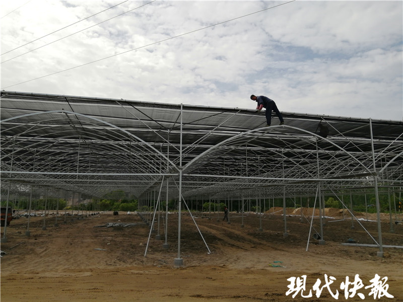 △育新村內(nèi)新建的萬(wàn)平連棟大棚項(xiàng)目