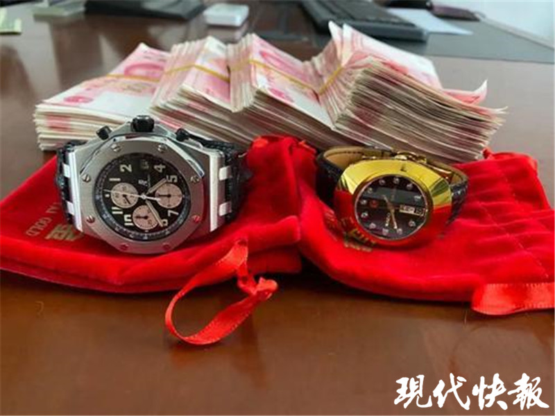 △警方追回的贓物贓款,前左為價值15萬的名表。通訊員供圖