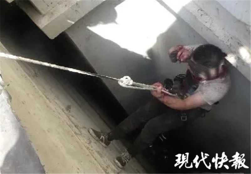 接到報(bào)警的消防救援人員到達(dá)現(xiàn)場發(fā)現(xiàn),一名30歲左右的工人在安裝空調(diào)外機(jī)時(shí),不慎踩空墜入12米深的通風(fēng)井內(nèi),無法脫身,頭部、身上多處受傷,流血不止,右胳膊無法動(dòng)彈。救援人員首先清除井口鋼管、雜物等危險(xiǎn)物品,以防出現(xiàn)二次傷害;另一組人員負(fù)責(zé)準(zhǔn)備救援工具。由于通風(fēng)井口狹小,無法使用其他救援設(shè)備,現(xiàn)場消防救援人員決定由一名身材較瘦的消防隊(duì)員攜帶三角巾,使用救生吊繩及安全繩下井實(shí)施救援。并將厚布?jí)|在安全繩與墻腳中間,防止下降時(shí)墻腳磨損安全繩。