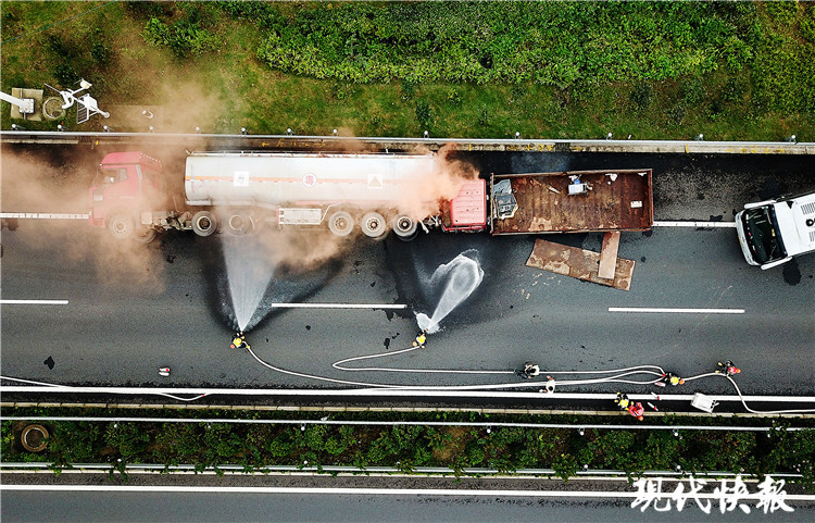 (記者 王天馳/文 顧煒/攝)?;奋噦?cè)翻事故發(fā)生后,無人機(jī)先行探查;信息監(jiān)管平臺(tái)通過運(yùn)營(yíng)軌跡立即鎖定車內(nèi)運(yùn)載物品及數(shù)量;高速公路“智慧大腦”立即啟動(dòng)分流……信息化時(shí)代,危化品車交通事故救援就是這么“擺”!