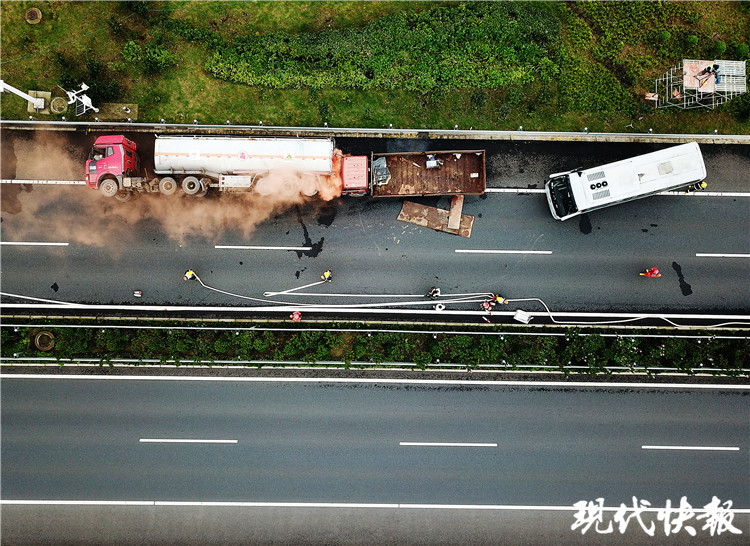 8月11日,由江蘇省公安廳、江蘇省交通運(yùn)輸廳、江蘇交通控股有限公司聯(lián)合主辦的2020年高速公路省際聯(lián)動(dòng)應(yīng)急預(yù)案演練,在S49新?lián)P高速揚(yáng)州段開演。應(yīng)用無人機(jī)、信息監(jiān)管平臺(tái)查詢,再加上江蘇高速“智慧大腦”指揮,1小時(shí)左右就將這個(gè)“危險(xiǎn)事故”化于無形。