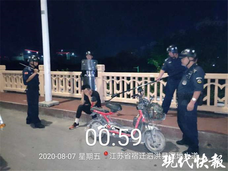 據(jù)警方介紹,事發(fā)時(shí)間為8月7日凌晨,當(dāng)時(shí),宿遷市泗洪縣公安局巡特警隊(duì)員們正和往常一樣在重點(diǎn)路段開展街面巡邏工作。“結(jié)果在泗州大橋上就看到遠(yuǎn)處有個(gè)男的鬼鬼祟祟,他剛偷了一輛電動(dòng)車。”其中一名巡特警隊(duì)員介紹,這名男子當(dāng)時(shí)眼神閃躲、四下張望,車上也沒有插鑰匙,而且在看到這幾位巡特警隊(duì)員時(shí),他的表情明顯變得很不自然。