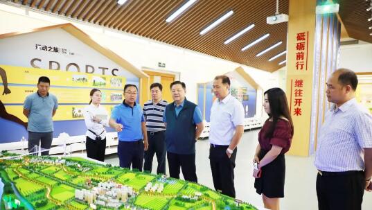 艾會長一行在世業(yè)鎮(zhèn)旅發(fā)副總虞亞軍陪同下,參觀鎮(zhèn)服務中心。在中心展館,艾會長一行詳細觀看了世業(yè)洲建設規(guī)劃全景沙盤。在觀看黨建展廳時,艾會長駐足良久,對“一村一品”特色黨建工作深深贊許。