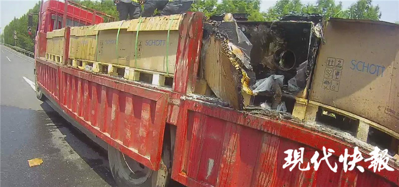 貨車拖了一車鏡面玻璃 聚焦陽光燒起來了