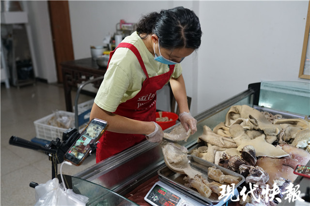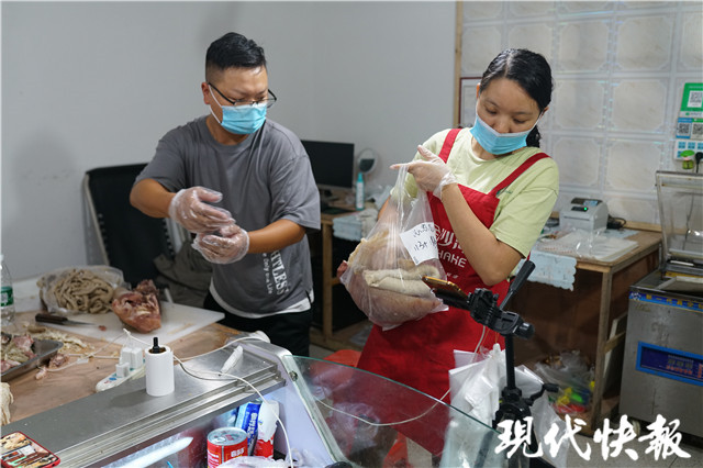 “廣東、福建、北京、湖北等,全國(guó)各地的顧客都有。做生意的老板比較多,一次就買六七十斤。”汪保美告訴現(xiàn)代快報(bào)記者,每次一開直播,直播間內(nèi)都有幾百人觀看,基本上都是鐵粉。店里回頭客也很多,不少顧客都是人托人介紹來的。私下里,汪保美與經(jīng)常購(gòu)物的顧客結(jié)交成了朋友。“有一名廣東的顧客來我這里買過很多次了。有次他要買二十斤的吊龍(牛里脊),直接打電話來,請(qǐng)我切好發(fā)給他,說我們家的肉非常新鮮。”汪保美自豪地說。