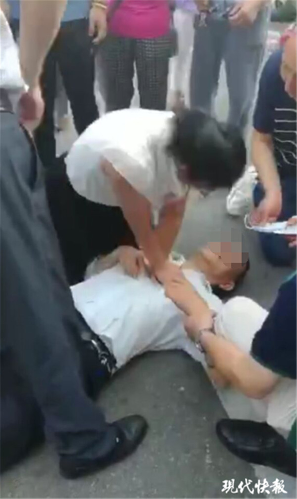 當(dāng)天下午2點(diǎn)半左右,徐長芹和老同學(xué)駱猛同學(xué)聚會結(jié)束后,走到酒店門口,就在二人有說有笑準(zhǔn)備話別時,突然,邊上的人群躁動起來。二人見狀,立即上前查看,只見一名60多歲的大爺躺在地上。經(jīng)了解,這名大爺60多歲,姓范(化姓),當(dāng)天范大爺也在徐長芹他們聚會的酒店吃飯,飯后,剛走出酒店,突發(fā)不適,一頭栽倒在地上。見有人暈倒,邊上的人立馬叫喚起來,有人趕緊拿出電話撥打120,與范大爺同行的幾位老朋友立即為其拍額頭、揉手腕、掐人中。