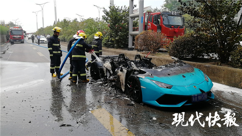 9月13日,在南京江北新區(qū)浦六路橋洞往南京長(zhǎng)江大橋方向,一輛蘭博基尼突然起火燃燒,現(xiàn)場(chǎng)濃煙滾滾。消防救援人員趕到現(xiàn)場(chǎng)時(shí),整個(gè)車身已經(jīng)被大火包圍,經(jīng)全力撲救,大火被撲滅,車身被燒毀嚴(yán)重,只剩下一個(gè)空架子。所幸,事故未造成人員傷亡。