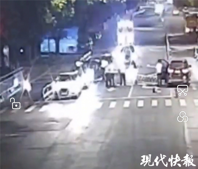 “當(dāng)時(shí)接近凌晨,外面也比較靜,我們正在交警大隊(duì)里做材料,突然外面?zhèn)鱽砗艽蟮淖矒袈?,我們就出去看了下,結(jié)果看到肇事駕駛員滿臉通紅,渾身酒氣,一看就是酒駕。”天寧交警大隊(duì)蘭陵中隊(duì)指導(dǎo)員唐曉軍介紹說,通過酒精呼氣測試,吳某的每百毫升血液中酒精含量已經(jīng)達(dá)到了31,屬于酒駕。