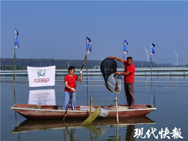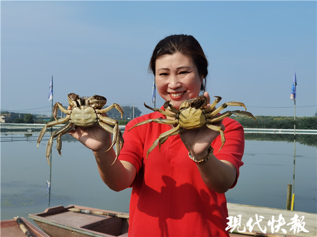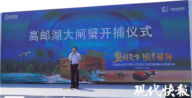 (記者 韓秋 文/攝)秋風(fēng)起,蟹腳癢。9月20日上午,2020揚(yáng)州高郵湖大閘蟹開捕儀式暨順豐大閘蟹物流解決方案推介會(huì)在當(dāng)?shù)赝貂r記農(nóng)場 舉行。高郵市委副書記鄭志明宣布大閘蟹開高郵湖開捕,高郵市委常委、統(tǒng)戰(zhàn)部部長、市政府黨組成員楊文喜向順豐速運(yùn)有關(guān)負(fù)責(zé)人頒發(fā)高郵湖 大閘蟹官方指定物流服務(wù)商銅牌?,F(xiàn)代快報(bào)記者在現(xiàn)場看到,開捕不久,一只只大閘蟹被漁民捕撈上來,現(xiàn)場許多嘉賓不時(shí)拿起手機(jī)抓拍這一精 彩瞬間。據(jù)工作人員介紹,當(dāng)天捕撈上來的公蟹最大的有七兩、母蟹最大的則有五兩。