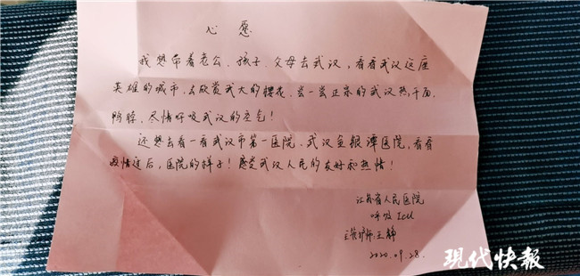 這是周婷婷的心愿,也是全體援鄂醫(yī)務(wù)人員的心愿之一。9月27日,現(xiàn)代快報(bào)聯(lián)合江蘇省人民醫(yī)院(南京醫(yī)科大學(xué)第一附屬醫(yī)院)在醫(yī)院門(mén)診處設(shè)置了一個(gè)心愿箱,用于征集援鄂醫(yī)療隊(duì)員的心愿。