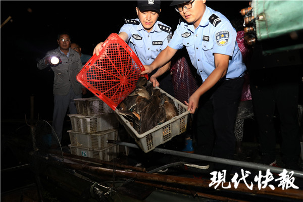 △ 警方連夜將偷捕的野鴨放歸大自然