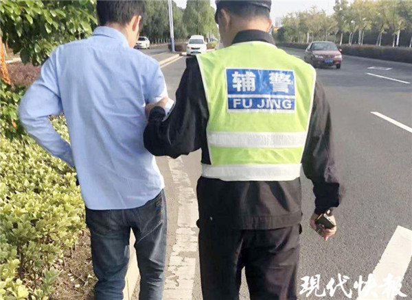 當(dāng)日下午4點(diǎn),鎮(zhèn)江新區(qū)交警大隊(duì)民警邵明才與輔警汪志民在轄區(qū)金港大道與通港路路口執(zhí)勤時(shí),一輛白色小型汽車突然停在路邊,從車上下來一男子,一手捂住腹部,一手捂住頭部,腳步踉蹌向執(zhí)勤點(diǎn)走去,輔警汪志民發(fā)現(xiàn)情況后趕緊迎上去扶住男子,并詢問發(fā)生了什么事。