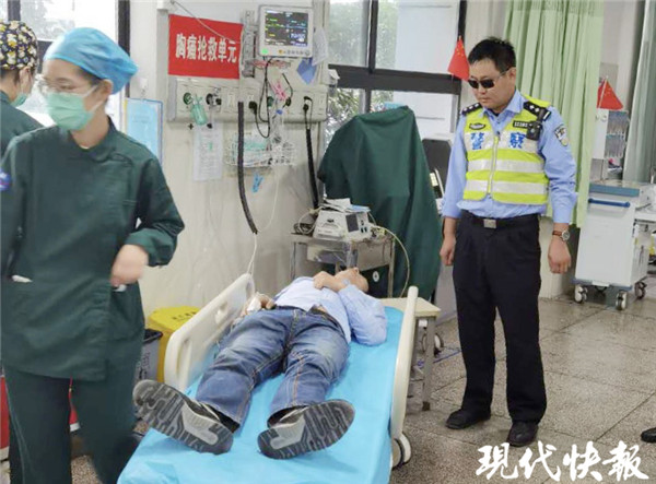 “警察同志,我胸悶好難受,快救救我!”男子迷迷糊糊地說著自己是揚(yáng)中人,從揚(yáng)中駕車去鎮(zhèn)江市區(qū),沒想到開車途中犯病了。說完,男子呼吸微弱,臉色蒼白,情況十分危急。汪志民見狀立即攙扶著他坐在白色小型汽車副駕駛座位上,自己駕車跟在警車后面往揚(yáng)中急速駛?cè)ァ?/p>