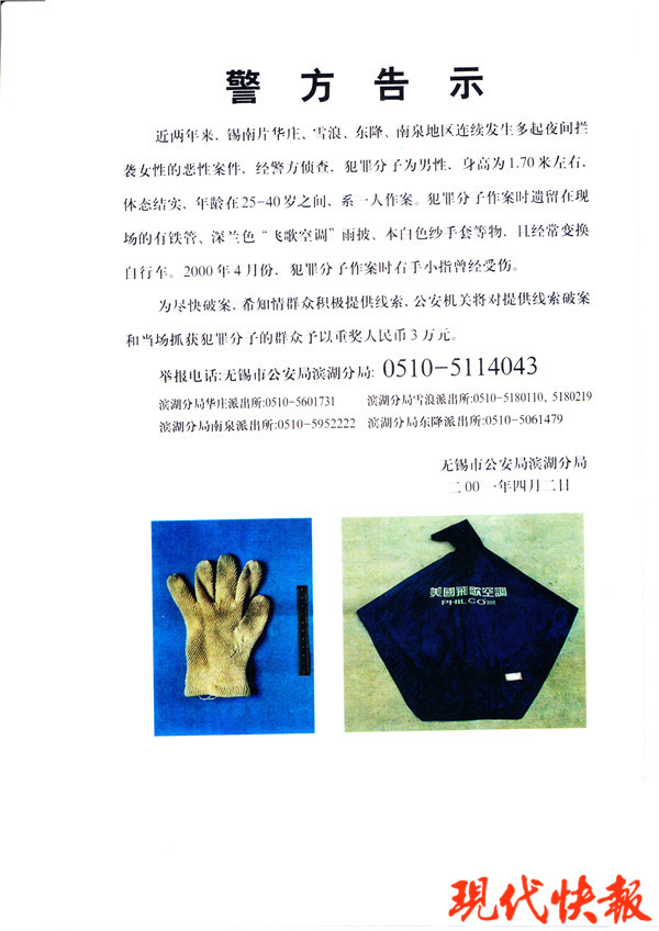 “我當(dāng)時(shí)是市局刑警支隊(duì)的一名刑事偵查技術(shù)員,當(dāng)天早晨接到指令后,我和其他幾名同事火速駕車趕往現(xiàn)場(chǎng)。”費(fèi)旭鳴現(xiàn)任無錫市公安局刑事科學(xué)技術(shù)研究所所長(zhǎng),多年從事刑事偵查工作的他,在19年前作為一名普通偵查員,直接參與了該系列案件的現(xiàn)場(chǎng)勘查工作。