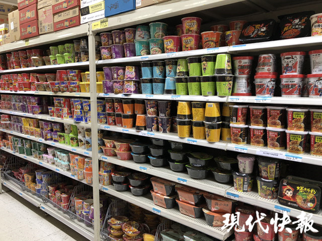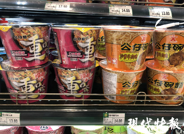 在新街口另外一家大型綜合超市,貨架上主要是傳統(tǒng)方便面,單價(jià)多在5元左右。其中只有兩款方便面價(jià)格較貴,有一款是康師傅的,一盒20元,重量246g;另一款統(tǒng)一方便面,重量180g,價(jià)格為18.9元。這兩款都是油炸方便面,大肉塊、高湯包是宣傳的重點(diǎn)。超市導(dǎo)購(gòu)員告訴現(xiàn)代快報(bào)記者,由于價(jià)格比較高,這兩款方便面銷量一般。