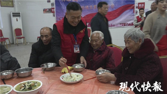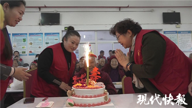 現(xiàn)代快報(bào)記者了解到,當(dāng)天下午3點(diǎn)多鐘,志愿者們一來(lái)到敬老院,就根據(jù)事先的分工,有的在廚房里忙著包水餃,有的搬運(yùn)生日蛋糕、生活日用品。而老人們?cè)诘弥獝坌娜耸縼?lái)到敬老院的消息,也早早來(lái)到食堂的餐廳等候。