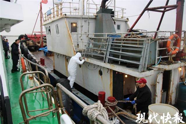 現(xiàn)代快報(bào)記者了解到,事發(fā)漁船停泊在距離射陽(yáng)港口大約10海里的海面上。接到指令后,射陽(yáng)縣漁政監(jiān)督大隊(duì)迅速啟動(dòng)應(yīng)急救援預(yù)案,出動(dòng)中國(guó)漁政32528號(hào)執(zhí)法船前往漁船停泊海域展開(kāi)救援。