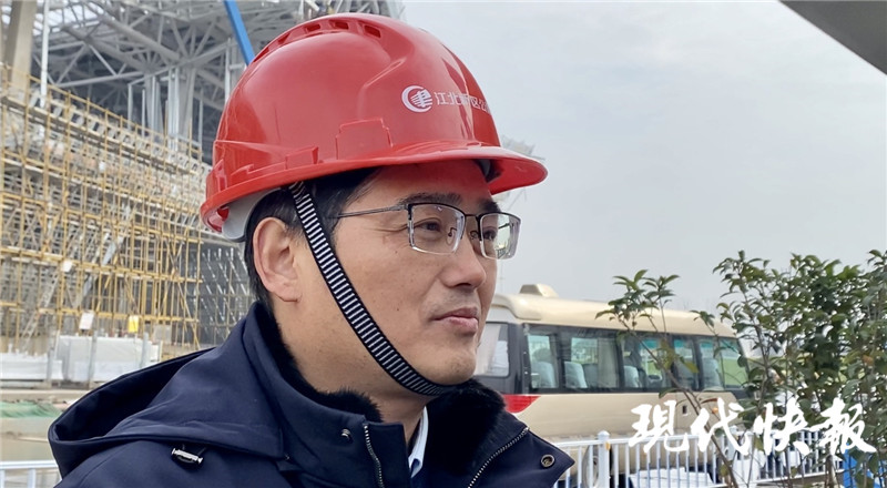 △江北新區(qū)公建中心建筑工程處處長(zhǎng)杜立春介紹楊子江會(huì)議中心施工建設(shè)情況