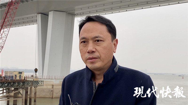 △南京市公共工程建設(shè)中心計(jì)劃處處長(zhǎng)王超介紹南京長(zhǎng)江五橋施工建設(shè)情況