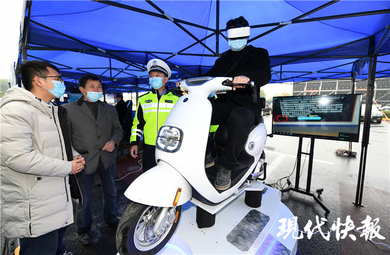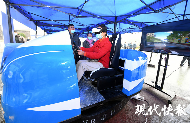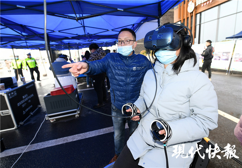 12月2日上午9點(diǎn)多,現(xiàn)代快報(bào)記者來到仙人山服務(wù)區(qū),遠(yuǎn)遠(yuǎn)就看到服務(wù)區(qū)內(nèi)多個(gè)交通安全展板,不少停車休息的市民正在圍觀。與此同時(shí),不遠(yuǎn)處多個(gè)“游戲”設(shè)備更是吸引了大量人群圍觀。“挺嚇人的,感覺跟真的一樣。”剛剛體驗(yàn)完“疲勞駕駛”的劉女士摘下VR眼鏡說道。原來,這些可不是普通的“游戲”,市民可通過VR眼鏡,現(xiàn)場體驗(yàn)疲勞駕駛、酒后駕車、分心駕駛、遠(yuǎn)光燈等等各種危險(xiǎn)駕駛行為可能帶來的后果,以及學(xué)習(xí)該如何預(yù)防。