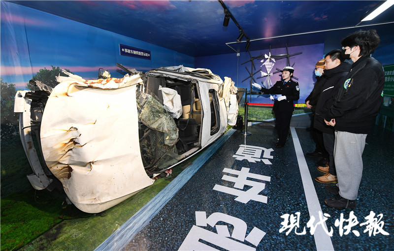 在所有主題展覽中,最吸引人的莫過于全國首個(gè)交通實(shí)景還原警示小屋。記者走進(jìn)小屋,一輛在事故中幾乎報(bào)廢的車輛就展現(xiàn)在眼前,車輛邊上還躺在兩具蓋著白布的尸體。據(jù)交警部門介紹,這是一起真實(shí)事故的還原現(xiàn)場,車內(nèi)人員未系安全帶,導(dǎo)致事故發(fā)生時(shí)被甩出車外身亡。相比交警平時(shí)苦口婆心的勸說,這樣的畫面更加直觀也更震撼人心。