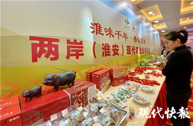 盱眙龍蝦、淮安大米、高溝捆蹄……現(xiàn)代快報記者看到,論壇現(xiàn)場展出了許多有當?shù)靥厣霓r(nóng)產(chǎn)品。淮安市委、市政府還組織了各縣區(qū)分管負責人輪流在臺上為各自的特色農(nóng)產(chǎn)品代言,清江浦區(qū)推薦的淮安紅椒口感辣度適中、顏色鮮艷、營養(yǎng)價值豐富;洪澤區(qū)的大閘蟹吃起來有點甜,因為它們的生活水質(zhì)非常好;金湖縣的芡實個頭大,顆粒飽滿,可以炒著吃,也可以燉湯……