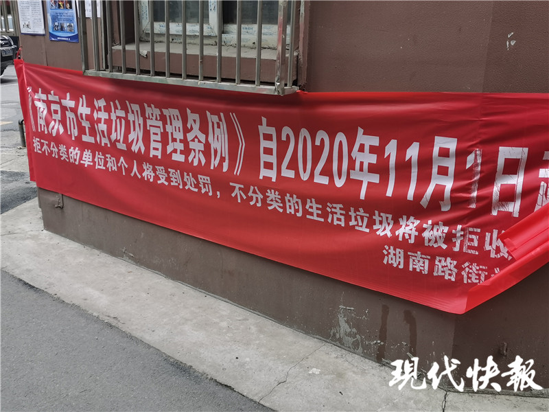 “垃圾分類好,廢物變?yōu)閷?rdquo;“拒不分類的單位和個(gè)人將受到處罰,不分類的生活垃圾將被拒收”,走進(jìn)湖南路街道湖北路87-89號(hào)小區(qū),道路兩側(cè)的橫幅很顯眼。每棟單元樓前,還貼有垃圾分類宣傳彩頁。
