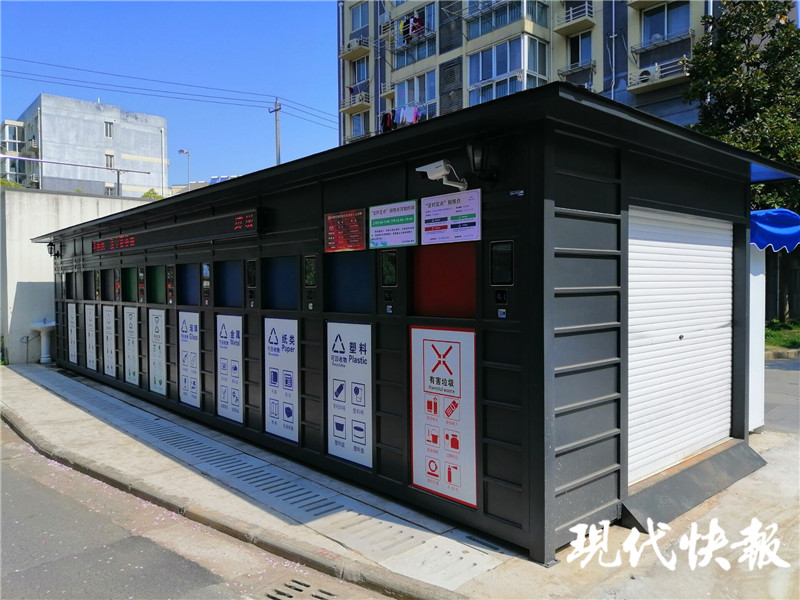 △湯山街道居民小區(qū)的垃圾分類智能投放設(shè)施