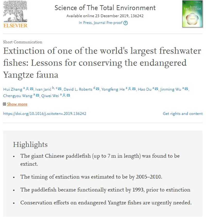 △論文《世界最大淡水魚(yú)之一可能滅絕:拯救長(zhǎng)江瀕危魚(yú)類刻不容緩》截圖