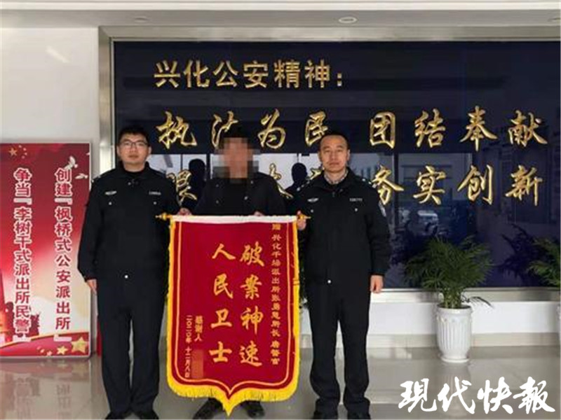△受騙人挽回?fù)p失后給民警送錦旗。通訊員供圖
