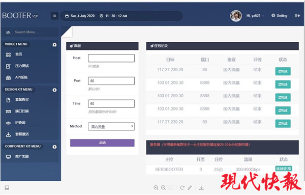 現(xiàn)代快報記者了解到,該犯罪團伙租用境外服務(wù)器搭建網(wǎng)絡(luò)攻擊平臺,并通過發(fā)展代理和出售會員賬號的方式牟利。去年下半年以來,共先后向5000多個網(wǎng)站實施過流量攻擊,非法獲利100余萬元。