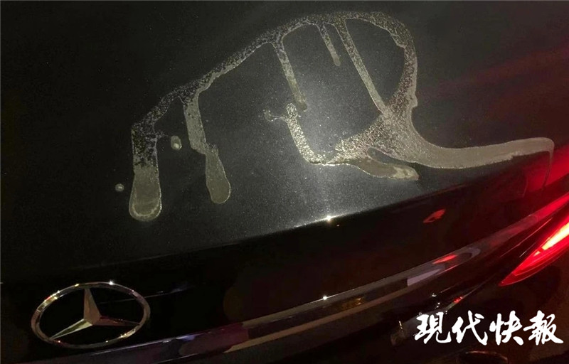 現(xiàn)代快報記者獲悉,近日,家住泰州靖江市橫港路的李某準(zhǔn)備開車出門時,發(fā)現(xiàn)自己的奔馳車上有許多不明物體,形似膠水類。李某將車開去清洗,洗車店的工作人員告訴他車上的是502膠水,無法洗掉,要換保護膜,滲透嚴(yán)重的地方還得重新做漆。