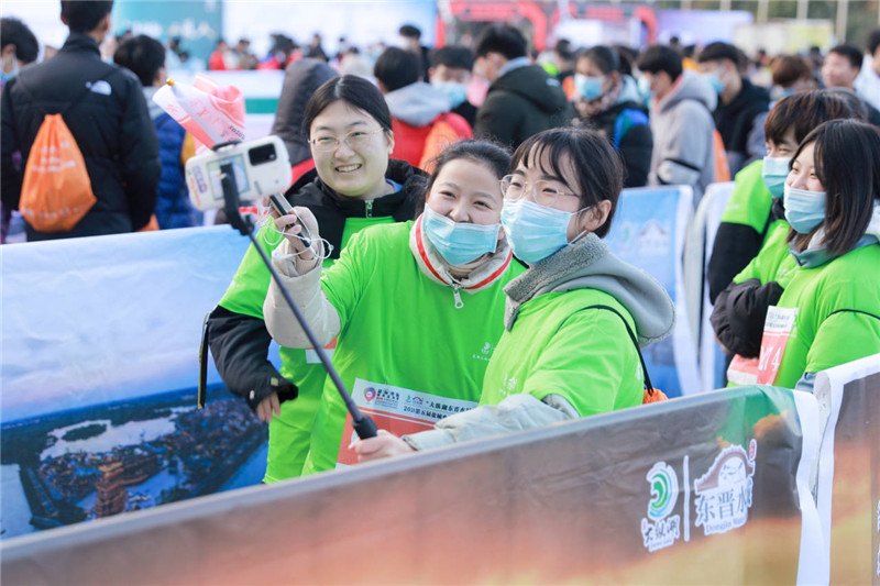 上午7點(diǎn)多,位于鹽都區(qū)鹽瀆街道的東方汽車廣場人聲鼎沸,選手們通過紅外測溫儀后,依次進(jìn)入集結(jié)互動區(qū)。“太期待了!”雖然室外有些寒冷,但已年過六旬的劉錦森和夏桂芳夫婦興奮不已,夫妻倆在姓名墻上找到了自己的名字,開心地讓隊(duì)友給他們拍照。